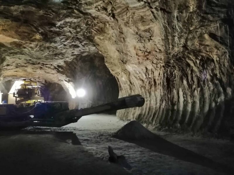 The main gallery of the mine, which defines its boundaries between east and west, is 4 km long. This is the length where there is salt. From there, they found gypsum.