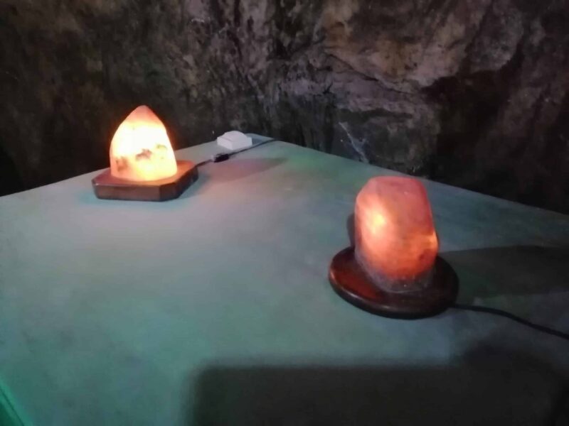 Before we enter the first room, the office, our guide alerts us to the need to circulate together. There are more than 45 km of labyrinthine galleries where we can easily get lost if we don’t keep up with the group. She also shows us that all the walls and floors we see are salt. 93% mixed with other ores, such as gypsum, clay and limestone.