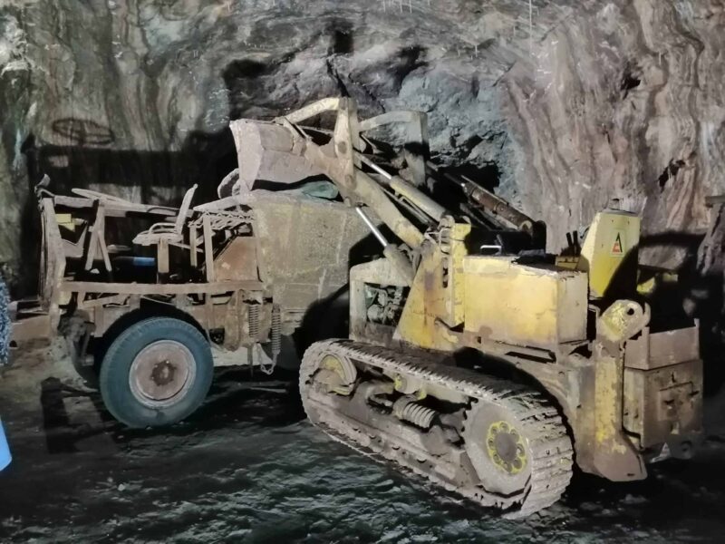 It’s interesting to see that all the machinery they have inside the mine at a depth of 230 meters, namely trucks, tractors, brush cutters, etc., had to be disassembled at the surface and reassembled by the mechanics already inside the mine, because the only way to access the mine is through elevator shafts that we also go down. Whenever there is a need to send a machine down, the elevators, which were once built by the mine team, have to be dismantled to send the parts down by cables.